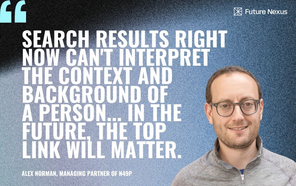 Search results right now can’t interpret the context and background of a person. Think of the search results on Amazon, which are polluted by all of your past searches. Or Spotify/YouTube — if you have a family member use it, your recommendations won’t be of interest to you. AI will start understanding the context and nuance of your searches going forward, leading to better matches. In the future, the top link will matter much more than the next 9. And this will have a large impact on marketing and marketplaces.
